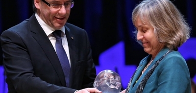 La degana de la FIB, Núria Castell, ha recollit aquest Premi d’Honor de mans del president de la Generalitat de Catalunya, Carles Puigdemont.